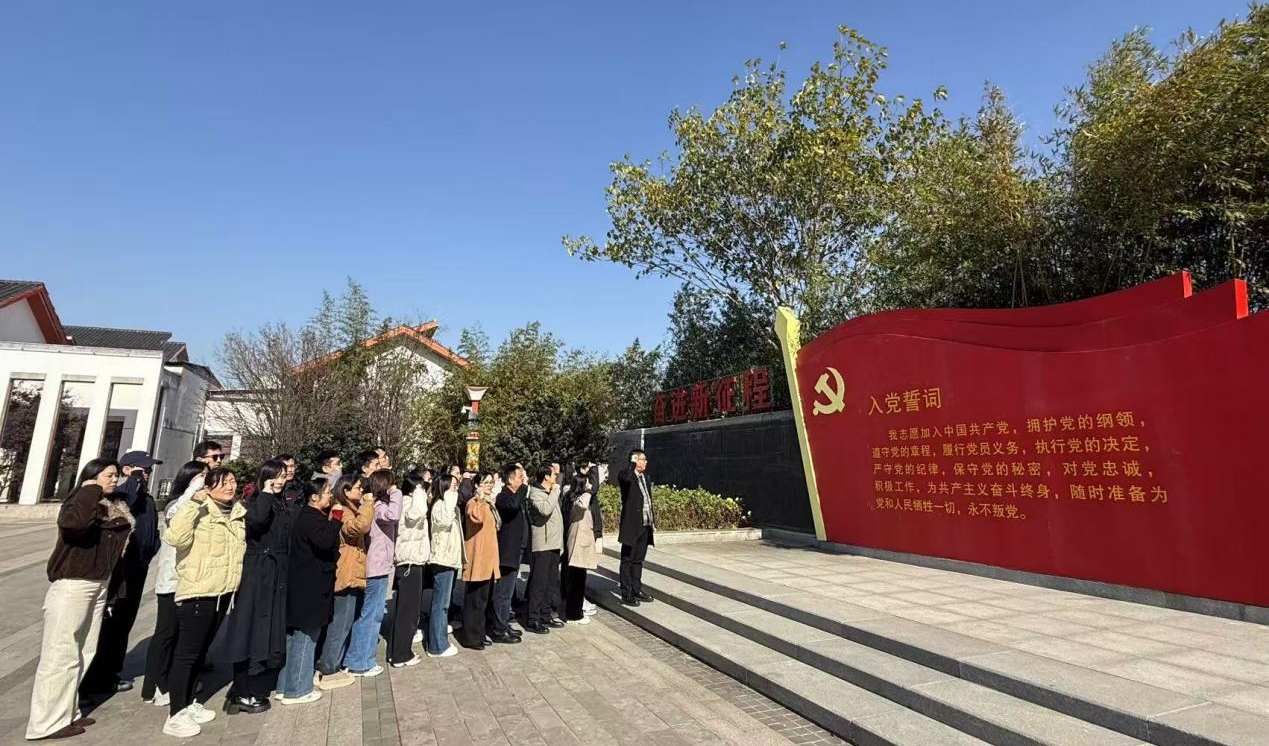 全体党员走进小岗村,实地感受这片热土上发生的深刻变革,参观了沈浩同志先进事迹陈列馆。馆内陈列的一幅幅历史图片、一件件珍贵实物,生动再现了沈浩同志扎根基层、鞠躬尽瘁的奋斗历程,让在场同志深受触动。在庄严的党旗下,党员同志们重温入党誓词,铿锵有力的誓言在现场回荡,进一步坚定了理想信念,强化了初心使命。