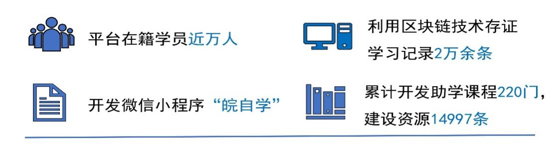 改革初期,依托安徽继续教育网络园区,探索构建了“三平台一终端”的智慧助学服务体系,并推出“皖自学”微信小程序,实现多端无缝衔接,移动端访问占比稳定增长。平台创新引入区块链存证、大数据分析、人脸识别等技术,初步建立起覆盖学习全过程的质量跟踪与支持体系。五年来,该助学服务平台注册考生持续增长,上线课程200余门,覆盖15个专业,累计服务考生超2万人次,课程通过率提升至92%。《光明日报》报道指出,“安徽开放大学联合省内多所高校成立自考助学服务改革专门委员会,通过区块链技术存证自考学习成果,开创省内相关成果纳入学分银行管理的先例。”