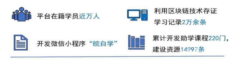 改革初期,依托安徽继续教育网络园区,探索构建了“三平台一终端”的智慧助学服务体系,并推出“皖自学”微信小程序,实现多端无缝衔接,移动端访问占比稳定增长。平台创新引入区块链存证、大数据分析、人脸识别等技术,初步建立起覆盖学习全过程的质量跟踪与支持体系。五年来,该助学服务平台注册考生持续增长,上线课程200余门,覆盖15个专业,累计服务考生超2万人次,课程通过率提升至92%。《光明日报》报道指出,“安徽开放大学联合省内多所高校成立自考助学服务改革专门委员会,通过区块链技术存证自考学习成果,开创省内相关成果纳入学分银行管理的先例。”