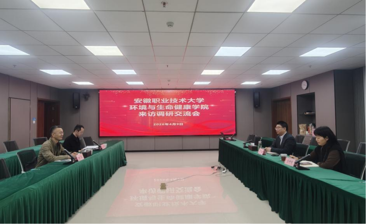 4月9日上午,安徽职业技术大学环境与生命健康学院负责人刘磊院长一行到访安徽继续教育网络园区调研交流。安徽继续教育网络园区管理中心负责人及相关人员参与交流。