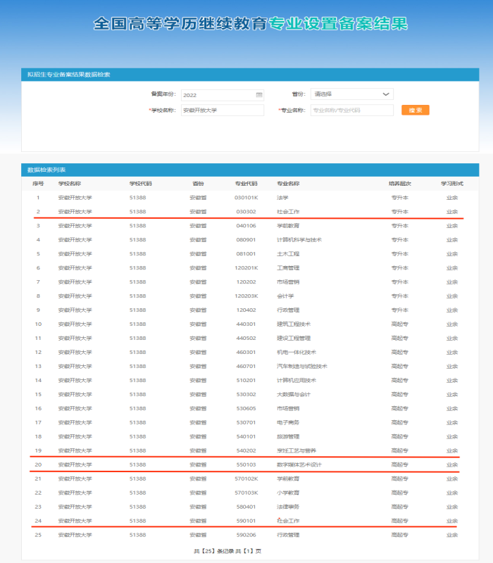 至此,高等学历继续教育招生专业增至25个,其中专升本专业9个、高起专专业16个,安徽开放大学招生专业结构进一步优化,主动服务地方经济能力水平不断增强。