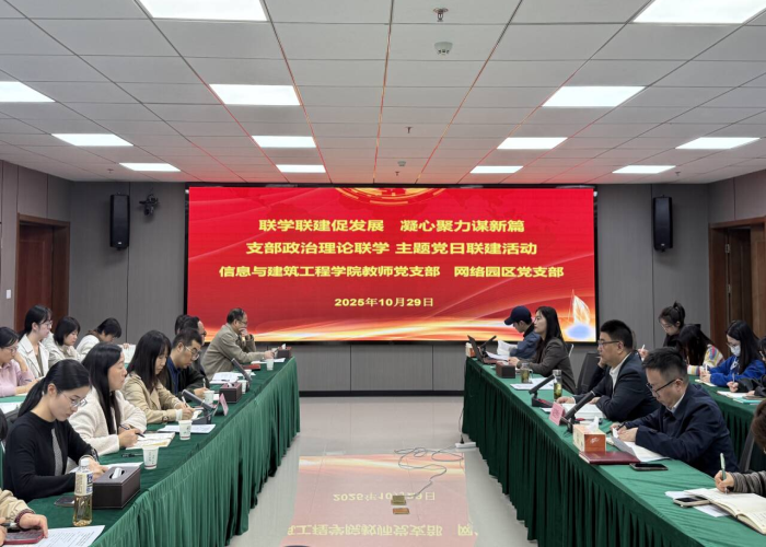 10月29日下午,网络园区党支部与信息与建筑工程学院教师党支部共同开展主题党日活动。网络园区党支部、信息与建筑工程学院教师党支部负责同志及相关教师参加了会议。会议由网络园区党支部书记主持。