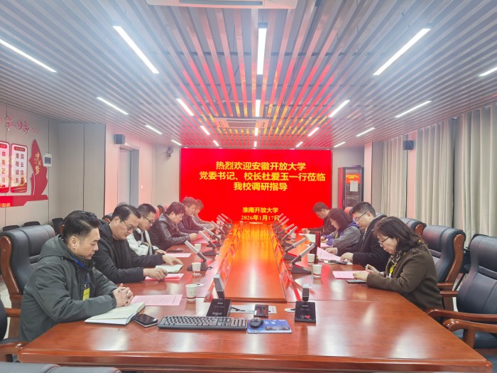 调研座谈会在山南高新校区启慧楼四楼会议室召开。学校继续教育学院院长从校区历史沿革与规模、职能与机构设置、办学设施条件等方面详细汇报了淮南开放大学办学现状和本次期末考试组织情况。