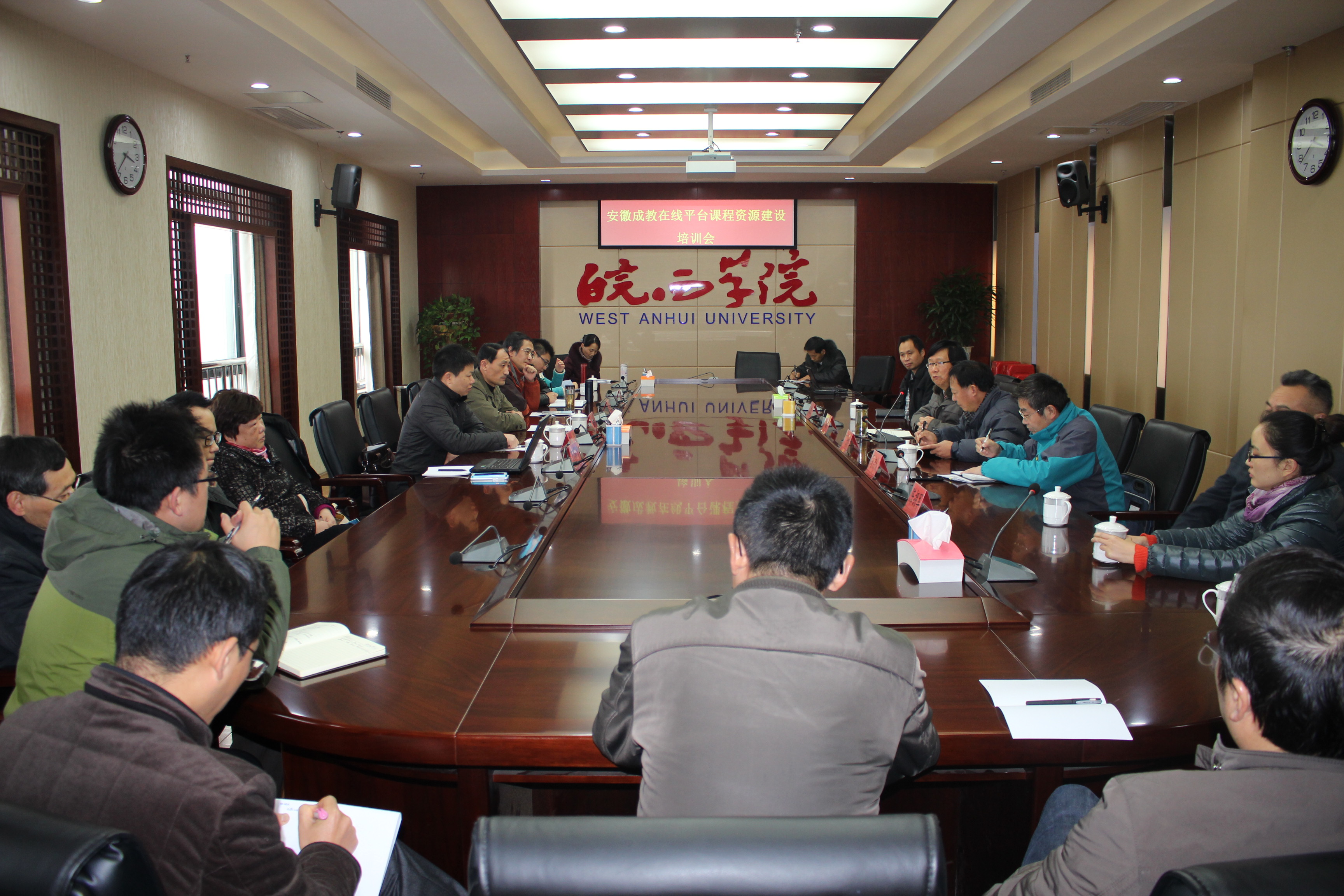 2015年11月25日下午,皖西学院召开了安徽成教在线平台课程资源建设培训会。校党委委员、副校长张穗萌、省教育厅高教处徐海洋主任、省电大安徽成教在线平服务中心主任李翔等领导出席了培训会,文传学院院长马启俊、政法学院院长张道全及相关专业网络课程主讲教师参加了培训会。继续教育学院副院长丁士祥主持了培训会。